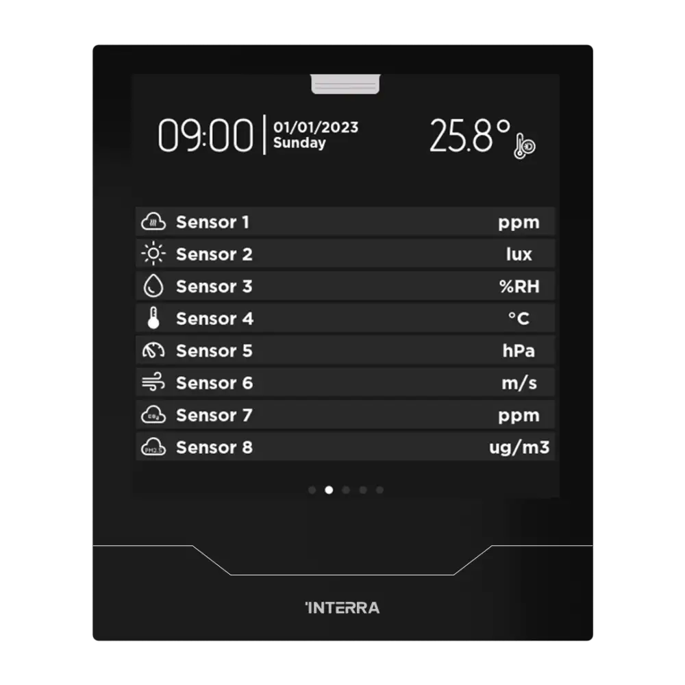 Esta versión del iX4 incorpora sensor AQI (Air Quality Index) además de los sensores estándar: proximidad, temperatura, humedad y luminosidad. La monitorización ambiental incluye página dedicada con valores de calidad del aire, energía y previsión meteorológica.